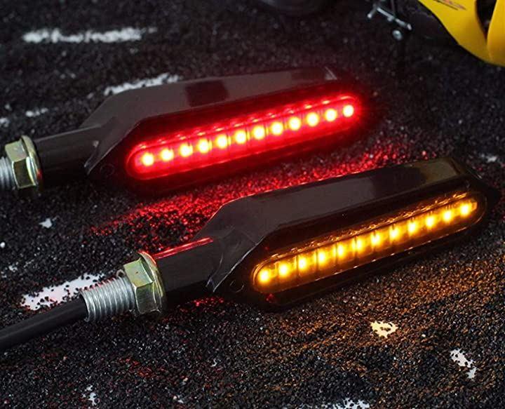 ・12VのLEDライトが流れるように点灯することで、視認性をあげ、周囲に存在と方向指示を知らせると同時に、カッコよさも演出できます。