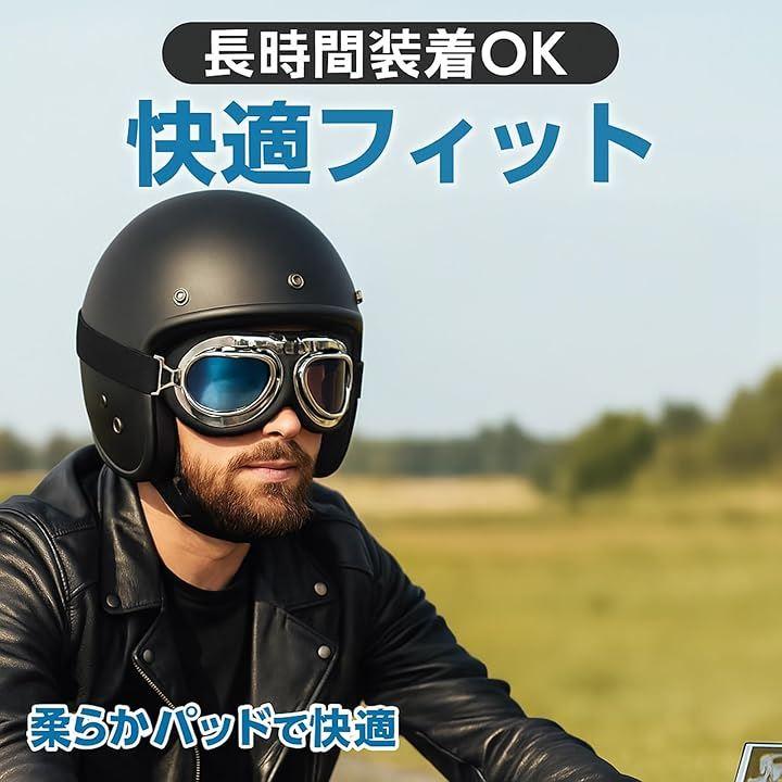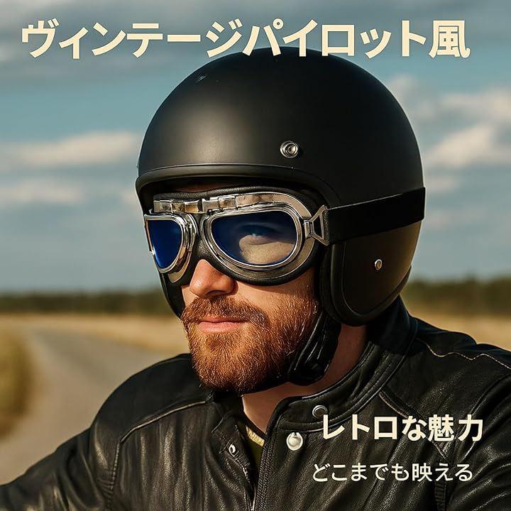 クラシックなパイロットスタイルで、半キャップやオープンフェイスのヘルメットにぴったりで、スタイルと機能性を両立させた逸品です。