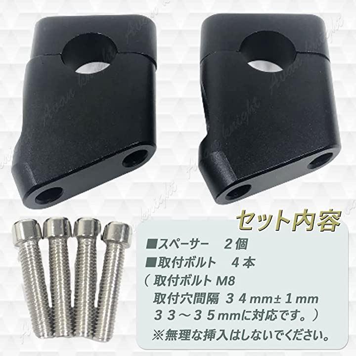 セット内容:アダプターx2 取り付けボルトx4 カラー:ブラック/シルバー 側取り付けボルト:M8 ブリッジ側取り付け穴間隔 34mm+/-1mm 33~35mmに対応です。
