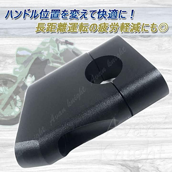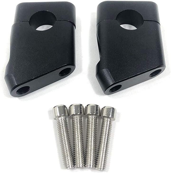 ・バイクのハンドルを15mmセットバック(ハンドルが元の位置より手前に来る、近づける)または15mmセットアップ(ハンドルの位置が元の位置より奥になる)し、高さが45mmアップ(高くする)することができるハンドルポスト(ハンドルライズ、バーライズ)スペーサーです。