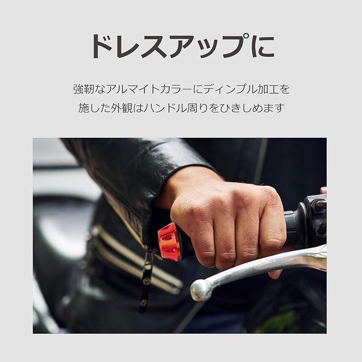 「ドレスアップに」強靭なアルマイトカラーにディンプル加工を施した外観はハンドル周りをひきしめます