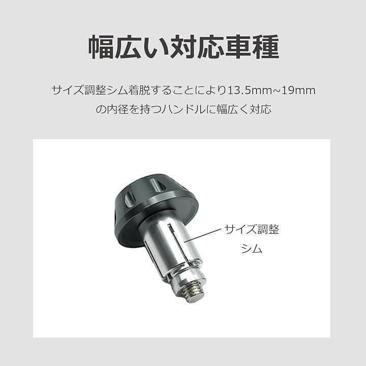 「バイク汎用バーエンド」スリーブの着脱でアルミハンドルにもスチールハンドルにも幅広く対応するアルマイト加工のバーエンドキャップ。