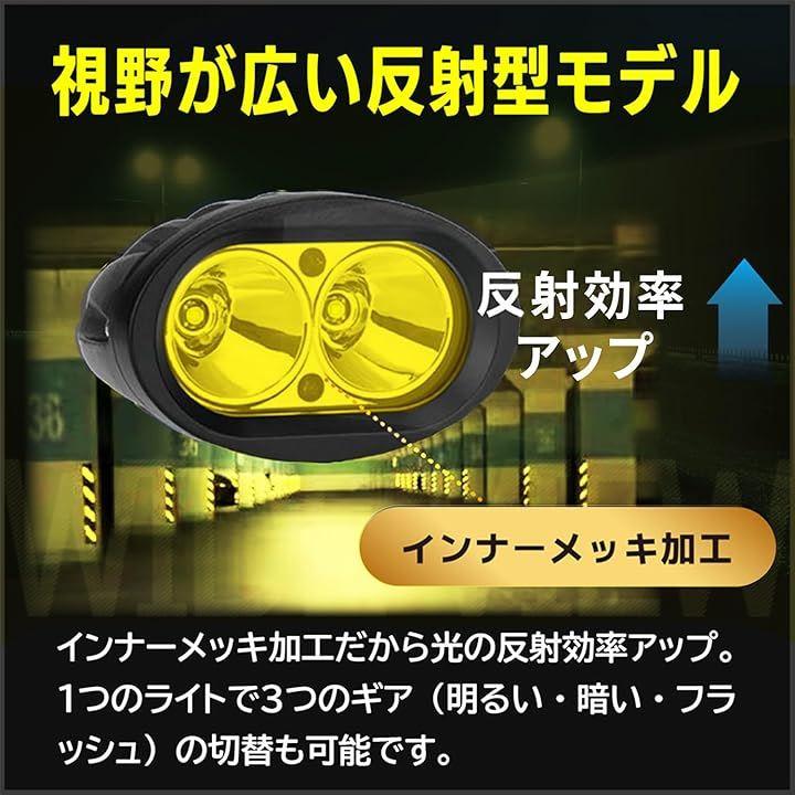 バイク用LEDフォグランプ2個セット(光:3000K/黄) / 5000lmx40Wの超高輝度LEDが、暗闇を照らし出します / 三段階のギア(明るさ、暗さ、フラッシュ)が、様々な状況に対応します / 防水仕様で、突然の雨でも安心 / タフなアルミ合金ボディが、高い耐熱性を提供し、ライトの寿命を長く保ちます / ボルトオン設置で、手軽に取り付け可能。