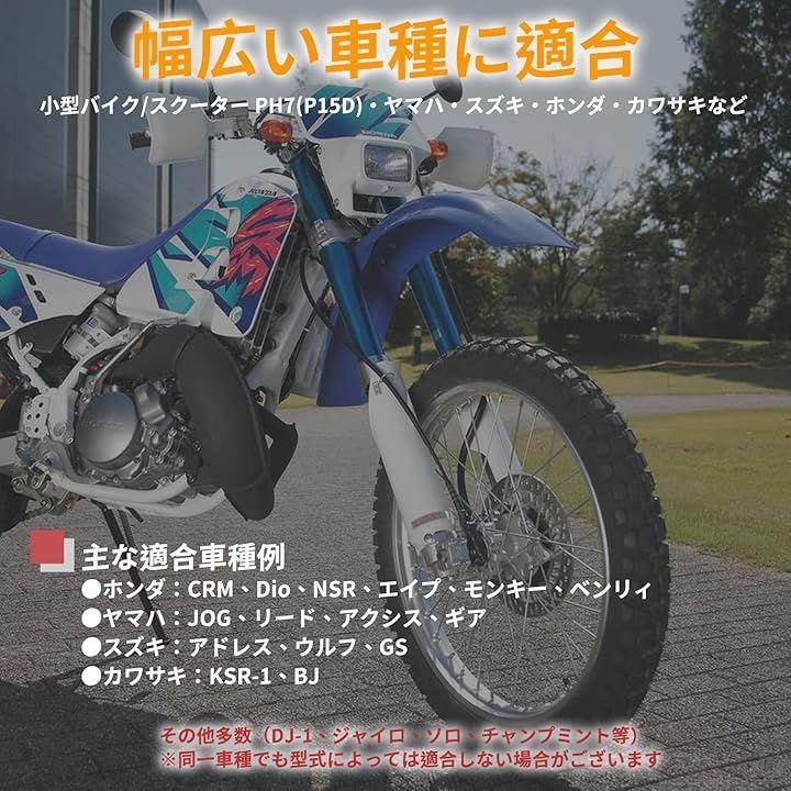 「広範な車種対応」ヤマハ:ジョグ、セロー225、シグナス125Si/SV、XJ225、YD125 など ホンダ :カブ、Dio(ディオ)、モンキー、ズーマー、エイプ、ゴリラ、ベンリィ、トゥデイ、NSR、NS-1 など カワサキ:KSR I/II、KSR110、KLX250SR、KDX125/220/250R など スズキ:レッツ、アドレス、アドレスV100、GS50、RG50、TS50W など *注意*:上記記載の車種でも年式や型式、フレームNo.などの違いにより車両によっては適合しない場合がございます。
