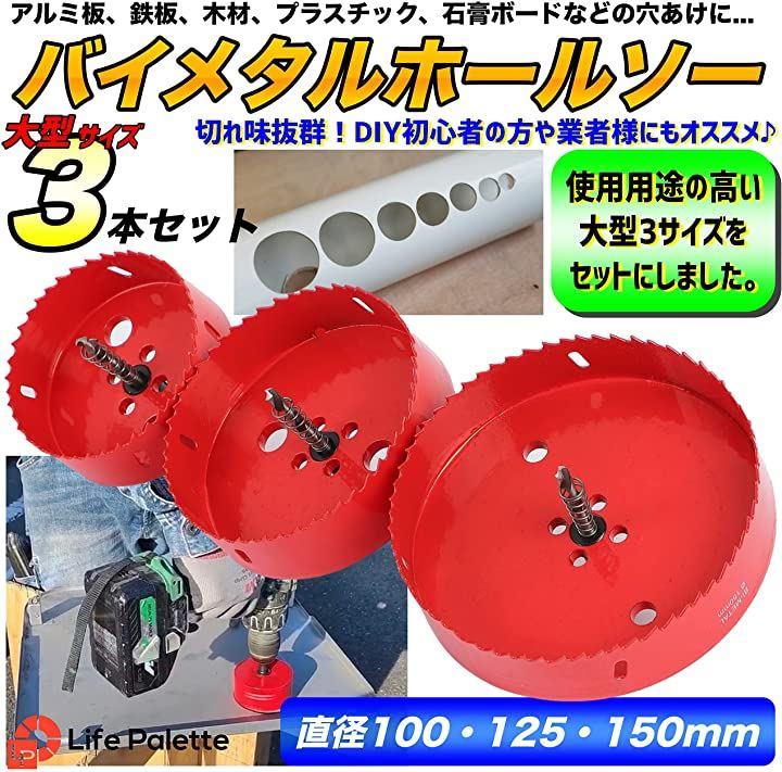 「大型ホールソー100mm125mm150mmボリュームセット」業者様ご用達の増量3本セットです。