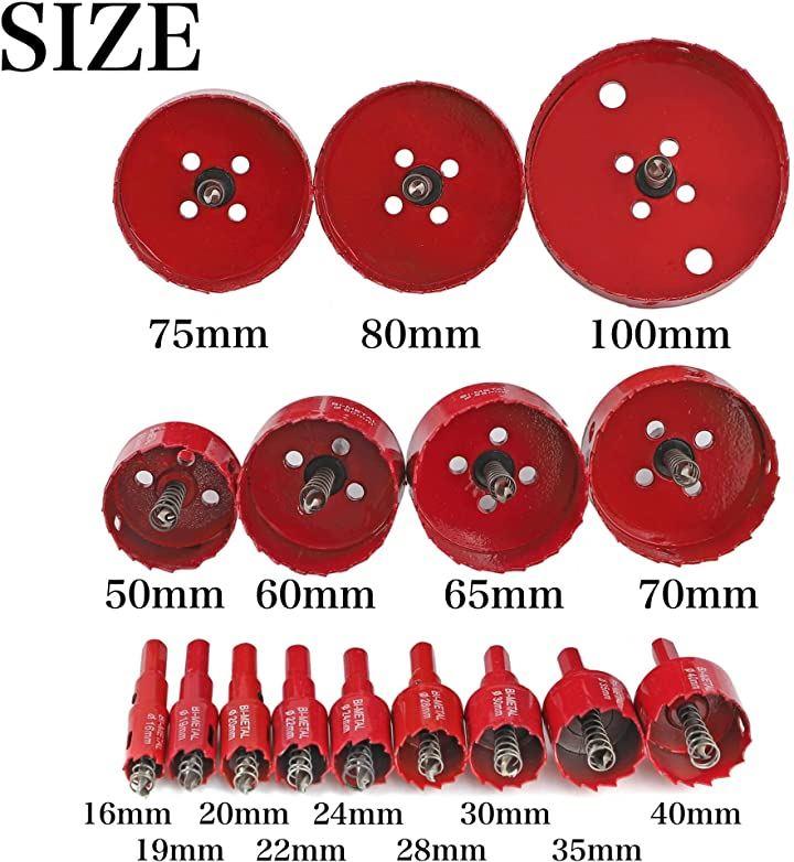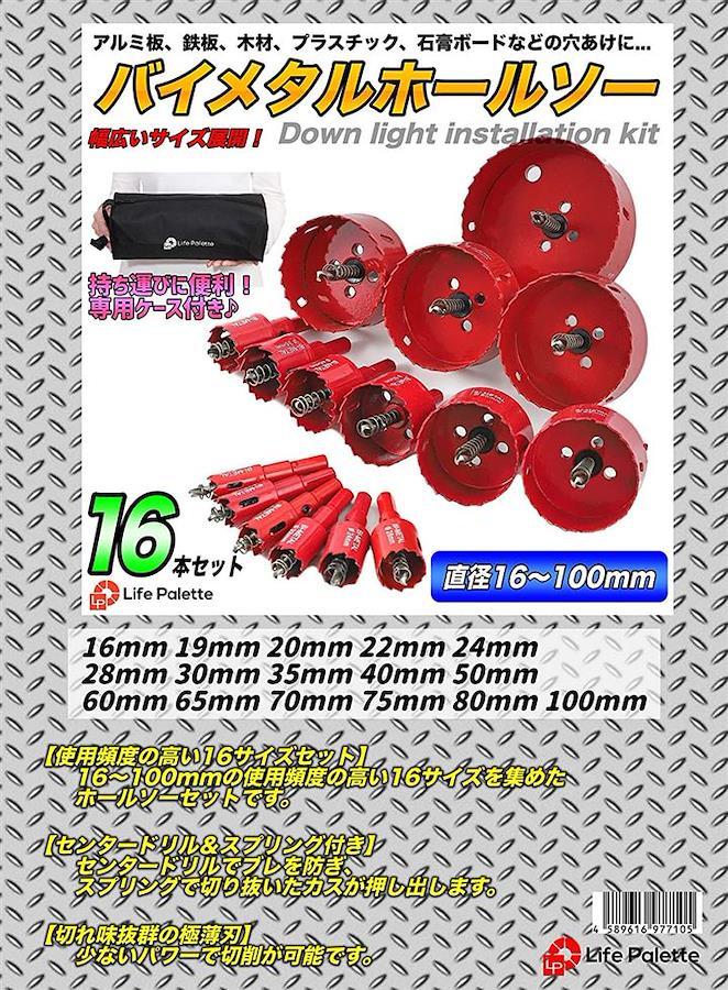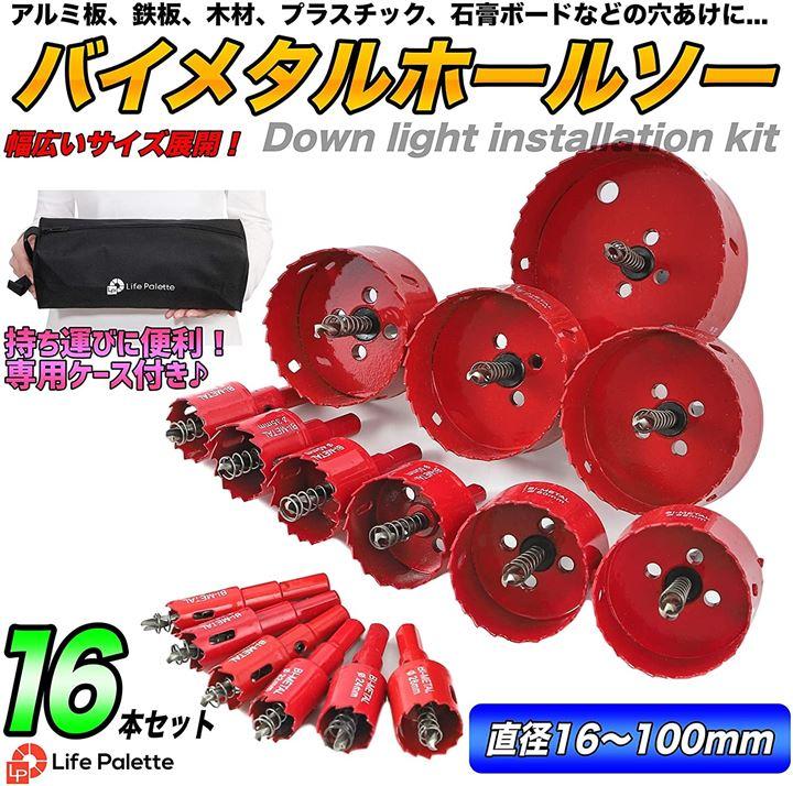 ・バイメタルホールソー 直径16~100mm 16本セット 16mm 19mm 20mm 22mm 24mm 28mm 30mm 35mm 40mm 50mm 60mm 65mm 70mm 75mm 80mm 100mm