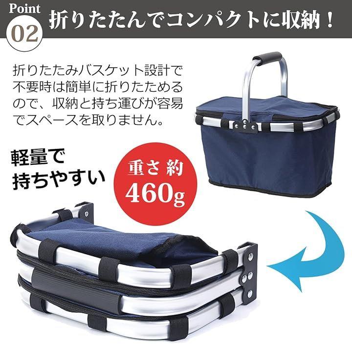 カゴ型の形状は安定感があり車内での保管時も倒れにくく、食品や雑貨の持ち運びにも適しています。