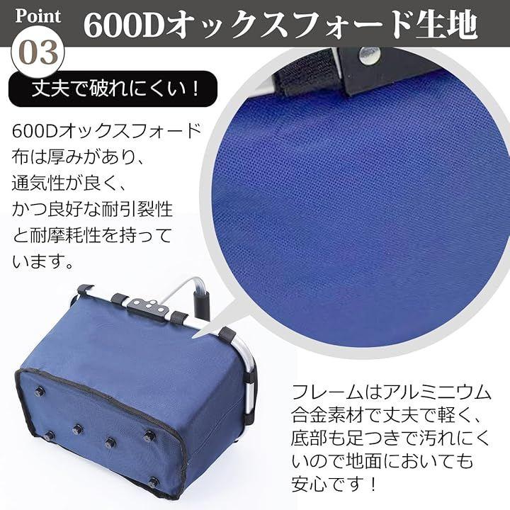 フレームは丈夫で軽いアルミニウム合金素材で長持ちし、底部も足つきで汚れにくいので地面においても安心できます。