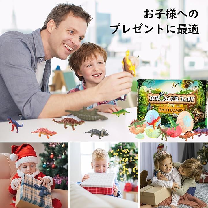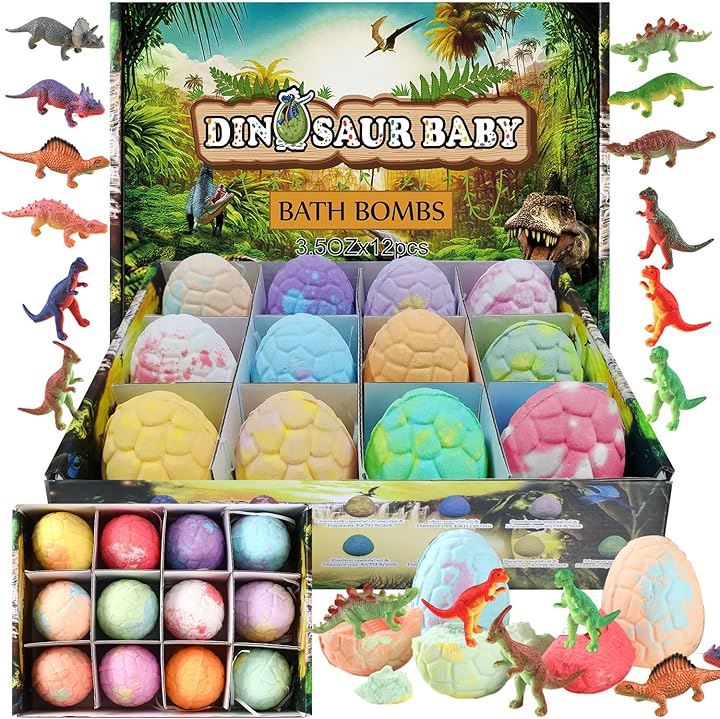 「子供への素敵な贈り物」楽しい香りとカラフルなエッグ型バスボールが12個入ったクールな恐竜ギフトセット。