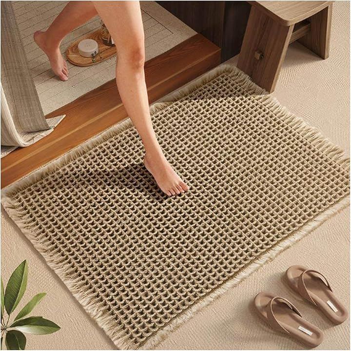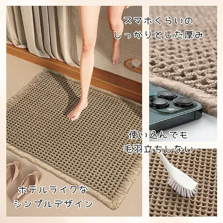 バスルームや玄関にちょうど良いサイズ(40cm x 60cm)で、洗濯機で丸洗いできるので、いつでも清潔をキープ。