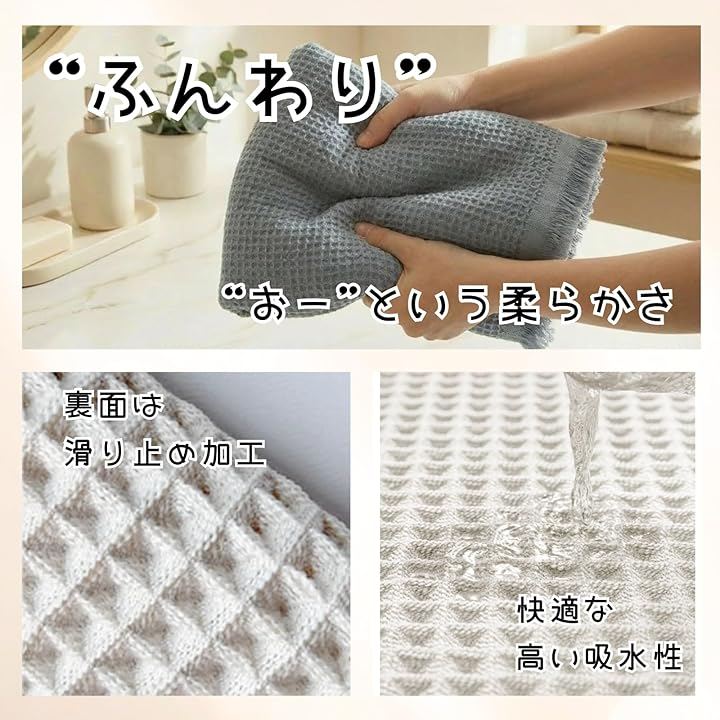 シャワー後や外出時もサッと水分を吸収し、すぐに乾く。