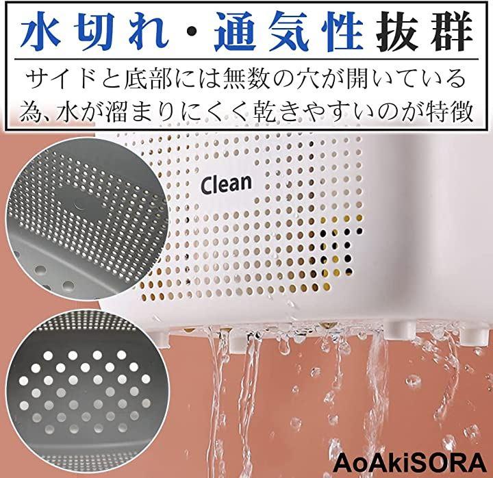 側面と底面に通気穴が開いていることで、バスケットを持ち上げると自然に水が排出され、カビの発生も防いでくれるなど使い勝手の良さも嬉しいポイントです