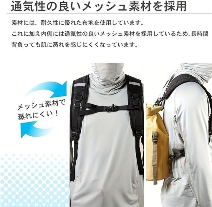 また、ストラップは幅約8.5cmで設計されており、重い荷物を背負っても肩への負担を軽減します。