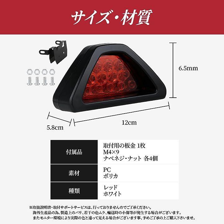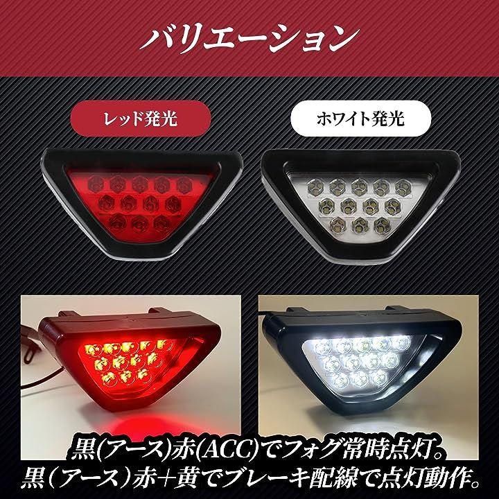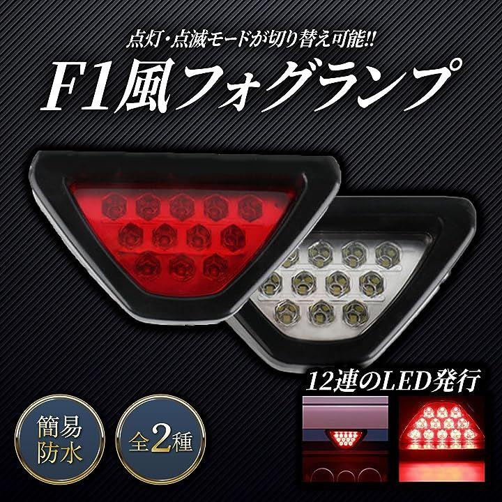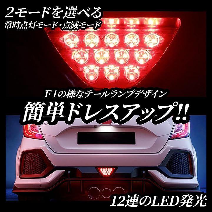 霧や悪天候時に使用する、バックフォグランプはF1の様なテールランプデザイン、尾灯に逆三角形の12連のLED発光により、愛車をカスタマイズしスタイリシュにドレスアップし、お車の外観を引き立てることができます。。