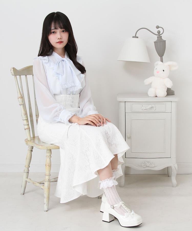 上品なボウタイブラウスと相性ぴったりなマーメイドスカートです。