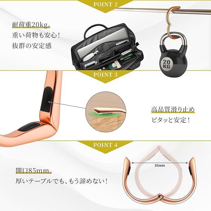 「様々なシーンで活躍」: フックの先端には滑り止めラバーパッドが付いており、バッグの滑り落ちを防ぐだけでなく、大切な家具の表面を傷から守ります。
