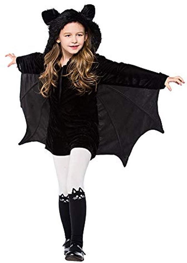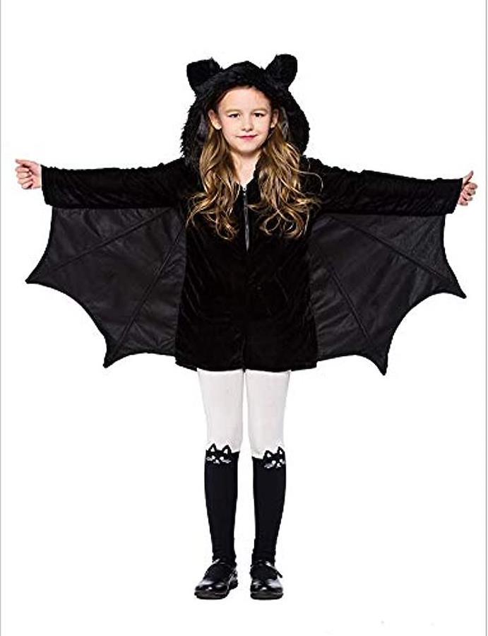 Batgirl Vampire Bat Costume Cosplay Costume Halloween with Body Seal Set of 2 Girls S700 XS Size Height 100-120cm