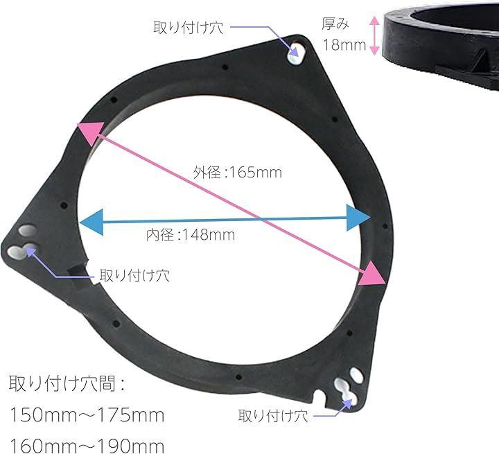 「商品仕様」*2個セット 内径:148mm 外径:165mm 厚み:18mm 取り付け穴間:150mm~175mm,160mm~190mm 材質:ABS樹脂(強度・耐衝撃性・耐熱性が非常に高い材質です)