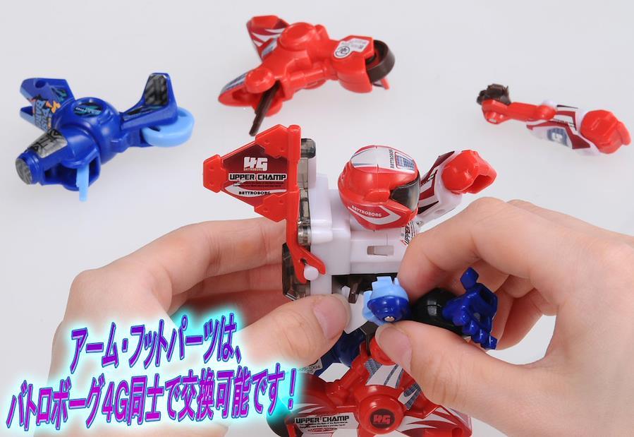 両手で高速張り手を放ち、相手を押して押して押しまくる。パワータイプのバトロボーグです。フットパーツは同時発売のアッパーチャンプとも交換可能です。