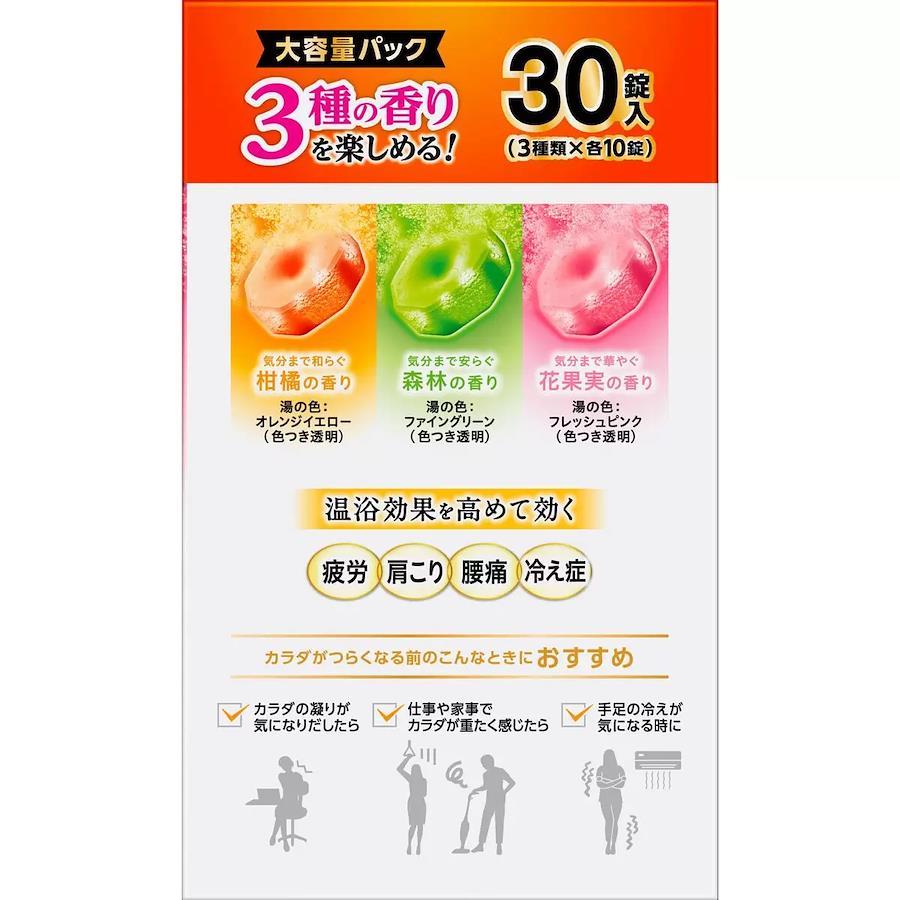 選べる楽しさ3種類の香り(柑橘、森林、花果実)赤ちゃんと一緒に入浴する時も使えます30錠入り 3種の香り×10錠185.0 x 173.0 x 109.0mm(高さ x 幅 x 奥行き)