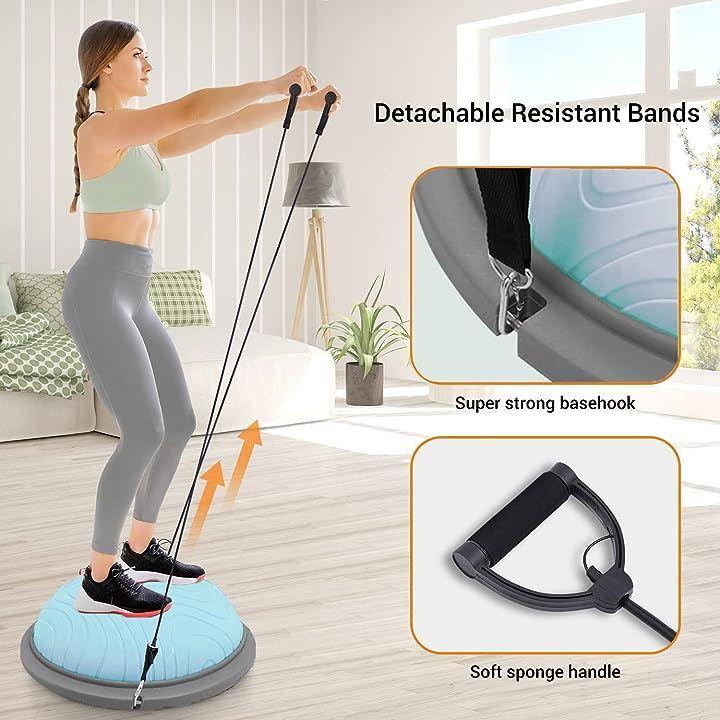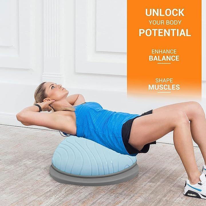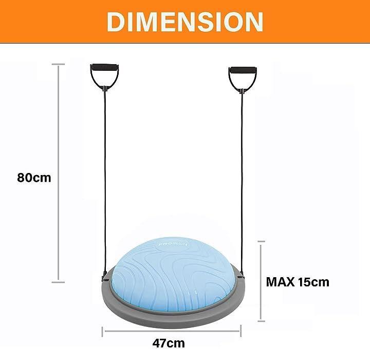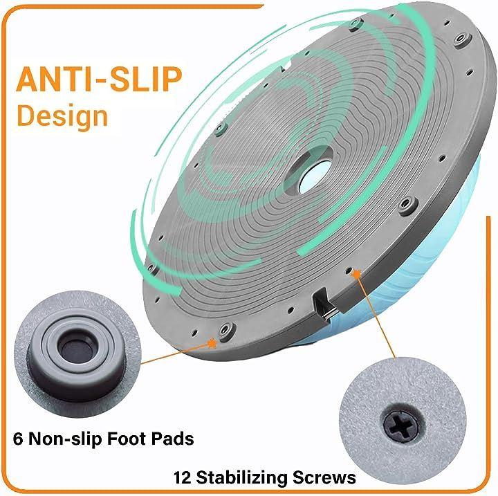 ・「安定性抜群 安全防爆裂」3mm厚めがあるボールの壁と耐摩損なPVCスタンドと6本厚いゴムの足座により、ボールが力を均等に受け、ベースが安定で、ベースの内部が独特な凹面デザインを採用し、力入れて踏み込むことによる不安定現象を避け、バランスボード筋トレしっかりとしたサポート