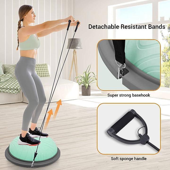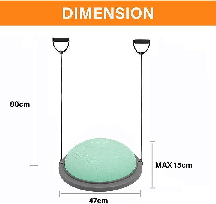・「安定性抜群 安全防爆裂」3mm厚めがあるボールの壁と耐摩損なPVCスタンドと6本厚いゴムの足座により、ボールが力を均等に受け、ベースが安定で、ベースの内部が独特な凹面デザインを採用し、力入れて踏み込むことによる不安定現象を避け、バランスボード筋トレしっかりとしたサポート