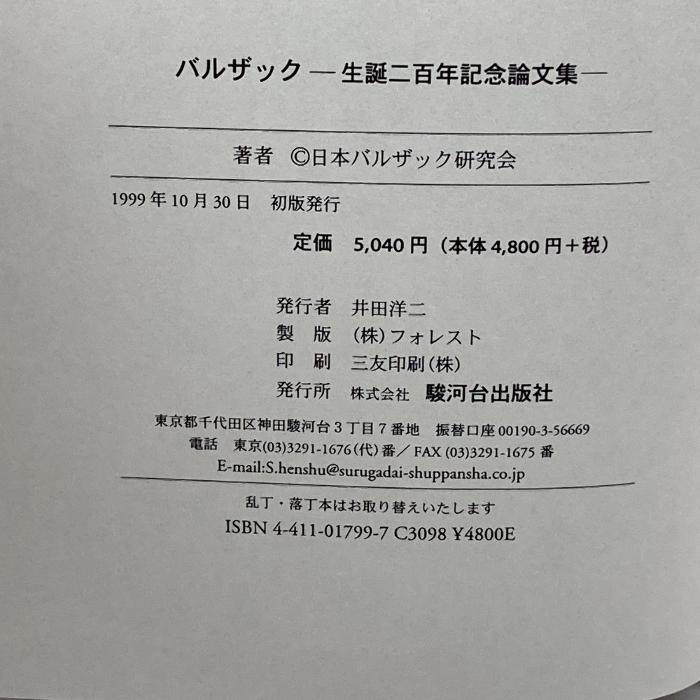 商品名:バルザック―生誕200年記念論文集 駿河台出版社 日本バルザック研究会