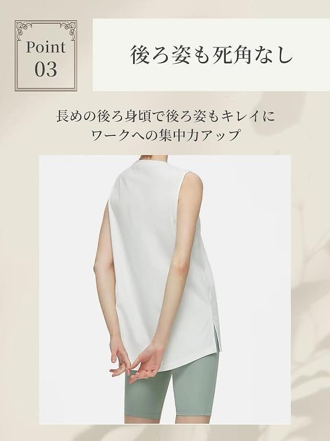 めくれにくく、胸元や脇の露出も控えめで安心の着用感。