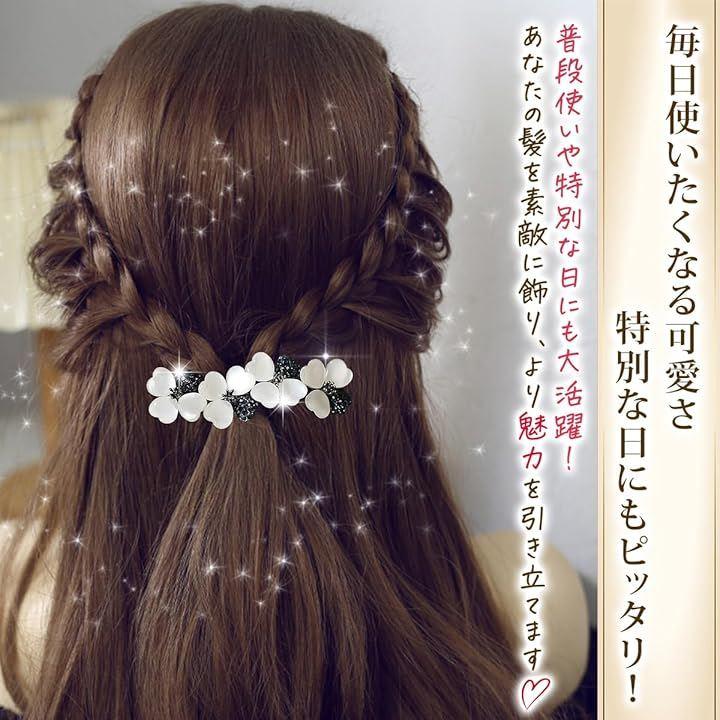 「選べる3タイプ」パール、ラインストーン、ブルーブラックの様々なデザインのバレッタをご用意。