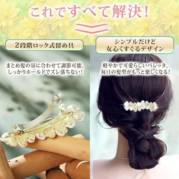 「2段階ロック式」まとめ髪の毛量に合わせて調節可能な2段階ロック式の留め具。