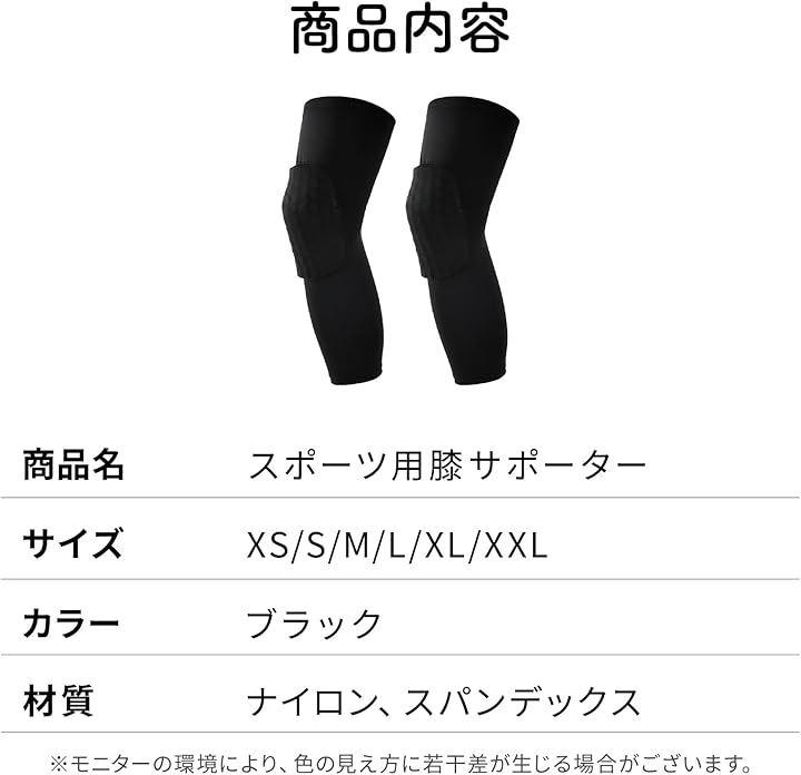 「商品詳細」セット内容:スポーツ用膝サポーター カラー:ブラック サイズ:XS/S/M/L/XL/XXL 材質:ナイロン、スパンデックス *モニターの環境により、色の見え方に若干差が生じる場合がございます。