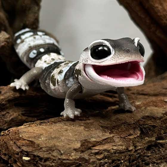 レプティシリーズに黒い目がかわいいニシアフリカトカゲモドキが登場!レオパードゲッコーと異なる可愛さを新規造形にて再現しました。