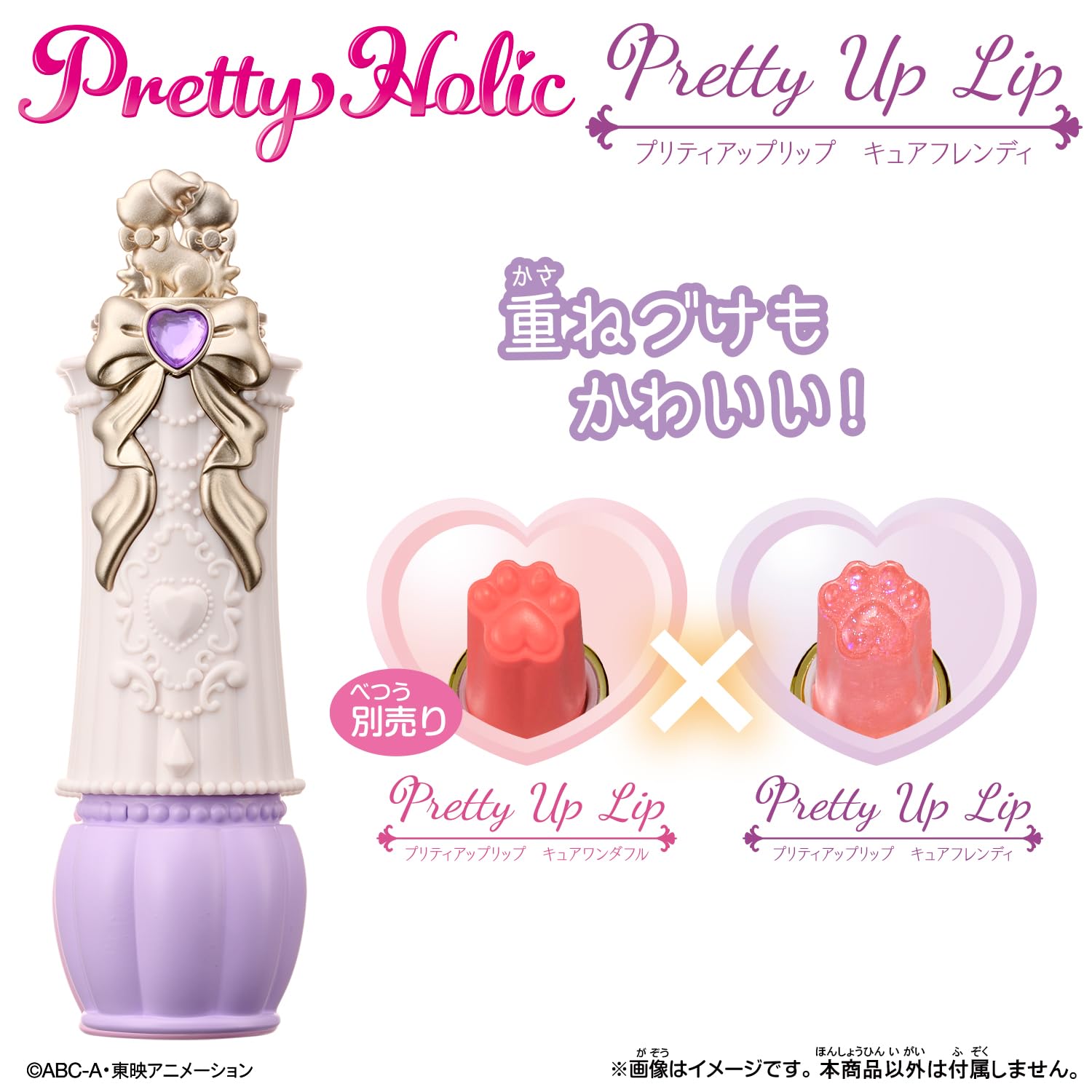 「プリキュアとおそろい」がコンセプトの「Pretty Holic」シリーズから、リップが登場!キッズのデリケートなお肌を考え、水や石鹸で簡単にメイクオフできます!リップ塗るとツヤ感を楽しめるクリアピンクカラーです。の形もとってもかわいい!別売りのキュアワンダフル、キュアニャミーリップと重ね付けると仕上がりの変化も楽しめます。電池:電池・不要対象年齢:6才~(c)ABC-A・東映アニメーション