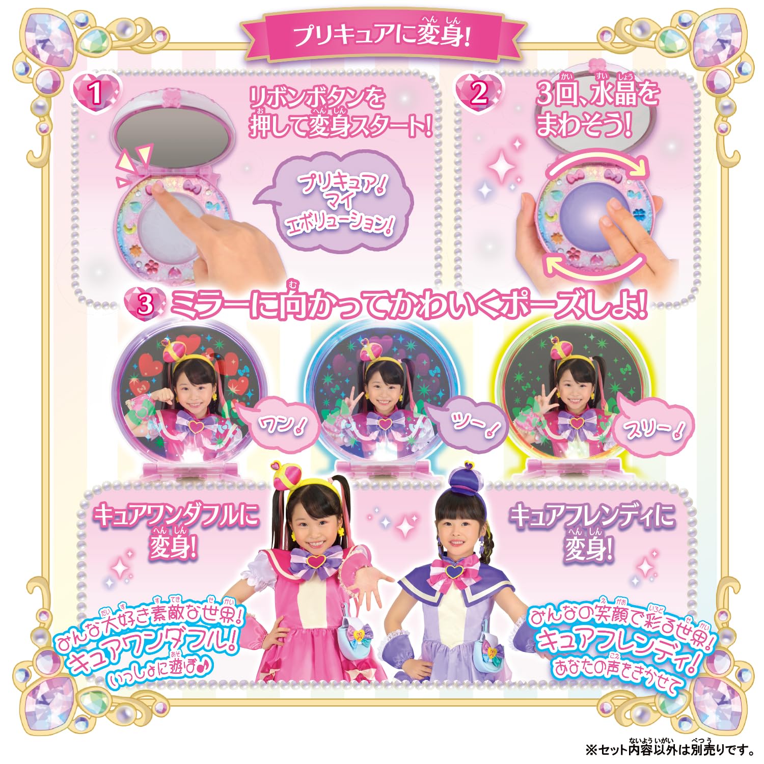 キュアワンダフルとキュアフレンディの変身アイテムです。 水晶を回転させると、鏡が発光して様々な模様が浮かび上がります。 ボリュームたっぷりのミニゲーム6種搭載。