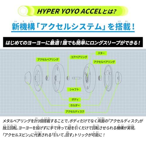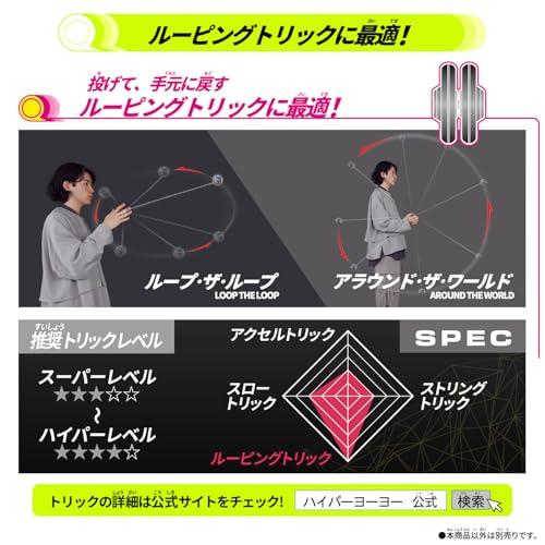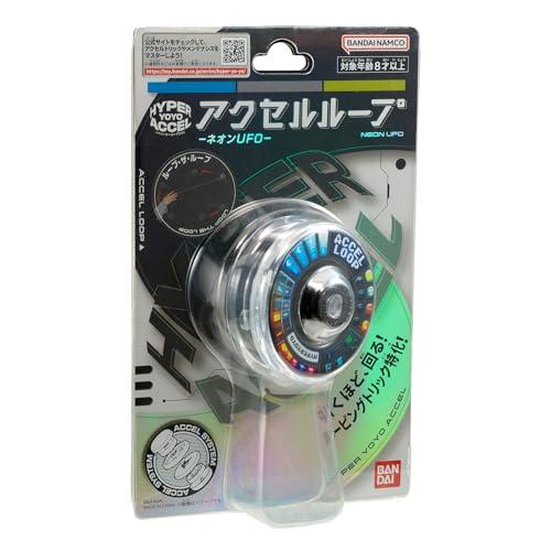 『HYPER YOYO ACCEL』より、「アクセルループ」が登場!「アクセルループ」は溝幅が狭く、薄型のため、手もとに返ってきやすく、「ループ・ザ・ループ」などのルーピングトリックに最適な機種です。手で持って回す"アクセルシステム"も搭載しています。「ハイパーヨーヨーアクセル アクセルループ-ネオンUFO-」は、クリアとブラックのボディにUFOのコックピットをイメージしたデザインがあしらわれたヨーヨーです。【推奨トリックレベル】スーパーレベル~ハイパーレベル【推奨トリックタイプ】ルーピングトリック[セット内容]・本体…1(本商品のセット内容以外は付属しません。)【HYPER YOYO ACCELとは】本体を手に持った状態でストリングを勢いよく引くことで、本体を投げずに高速回転させることができる日米で特許出願済の新機能「アクセルシステム」を搭載したハイパーヨーヨーシリーズです。本機能を搭載したことにより、従来のヨーヨーでは再現不可能な新たなトリックが可能となりました。 (C)BANDAI [カテゴリー]HYPER YOYO ACCEL [使用電池]電池・不要 [対象年齢]8才~