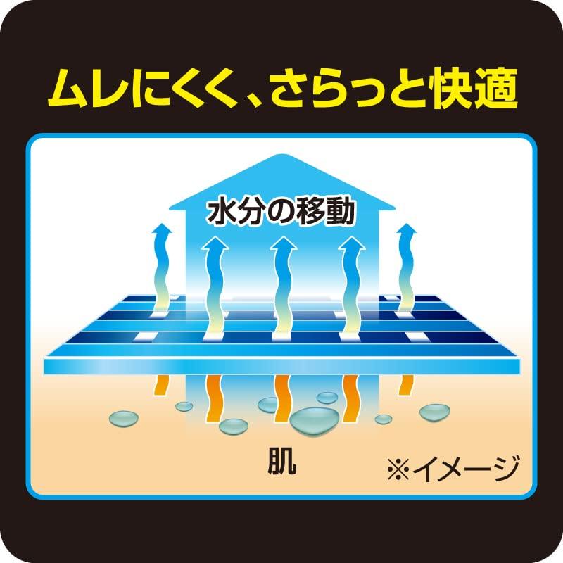 【特徴1】快適高通気構造 サポーター着用時の不快なムレをさらに抑えるために、一部に薄くて通気性の良いドライメッシュ編みを採用。また、快適性を高めるため肌側には吸水速乾素材を採用しました。テーピング機能は維持しながら、長時間着用してもムレにくくサラッと快適に使用できます。