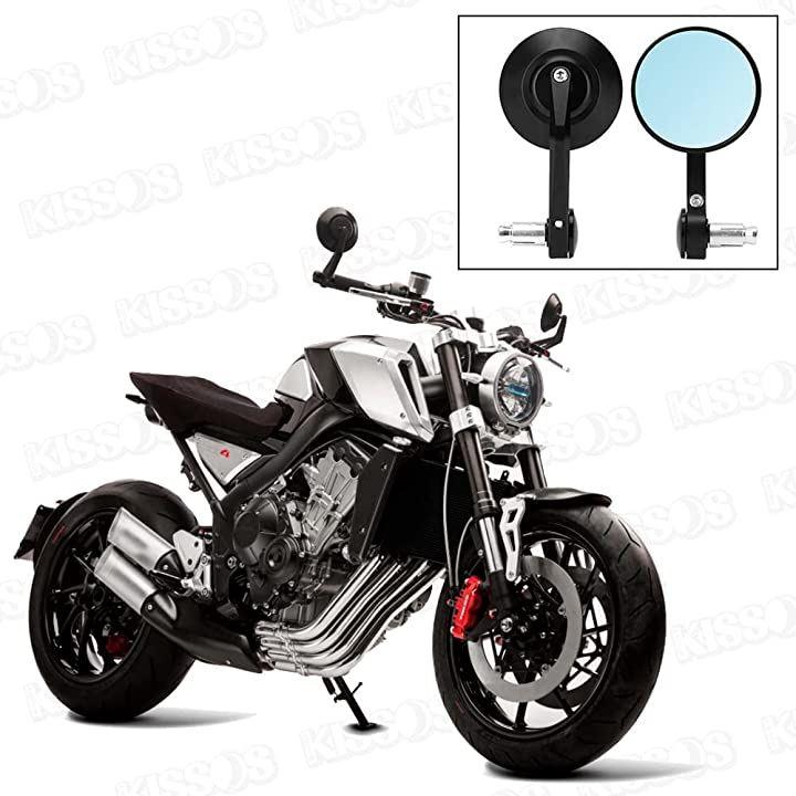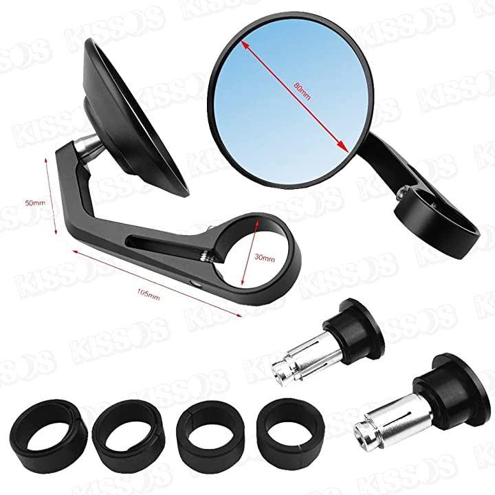 ・商品名: バーエンドミラー バイク ミラー バーエンド 汎用 丸形 バイク用ミラー CNC アルミ製 HONDA SUZUKI YAMAHA 左右 セット 「商品仕様」ミラー部直径:80mm 素材:CNCアルミニウム合金 重量:0.72kg対応ハンドルバー:13-14mmおよび17-19mm対応