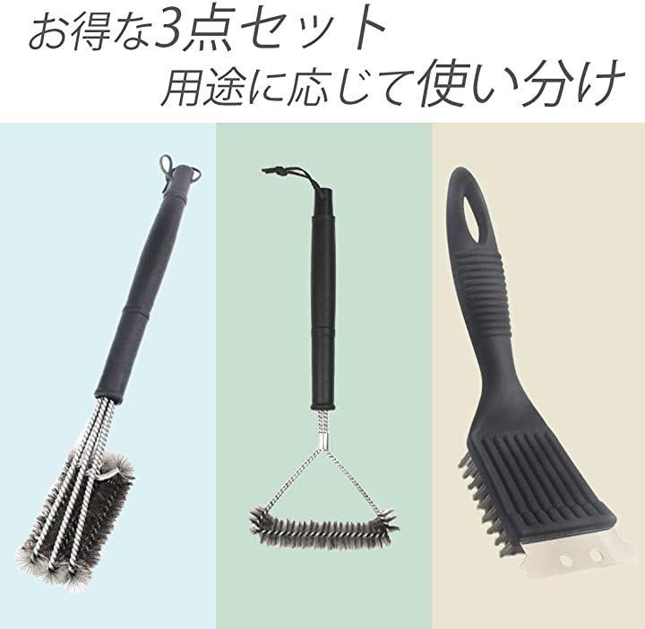 三連ブラシは縦に長いブラシがグリル表面の汚れ落としに。