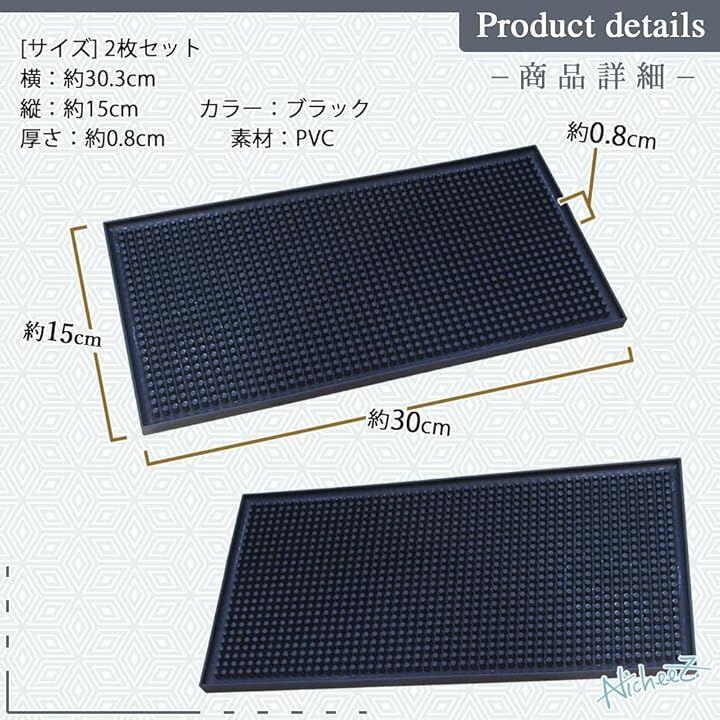 「商品内容」バーマット セット数:2個 カラー:黒 素材:PVC サイズ:約30cmx約15cmx約0.8cm