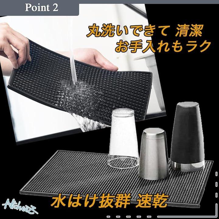 「滑り止め&省スペース」バーやカフェのカウンターに最適なラバー構造で衝撃を吸収し、グラスやボトルが滑りにくく安定して置けます。
