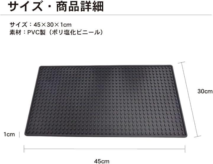 「商品詳細」バーマット2枚入り サイズ:45x30x1cm 素材:PVC製(ポリ塩化ビニール)