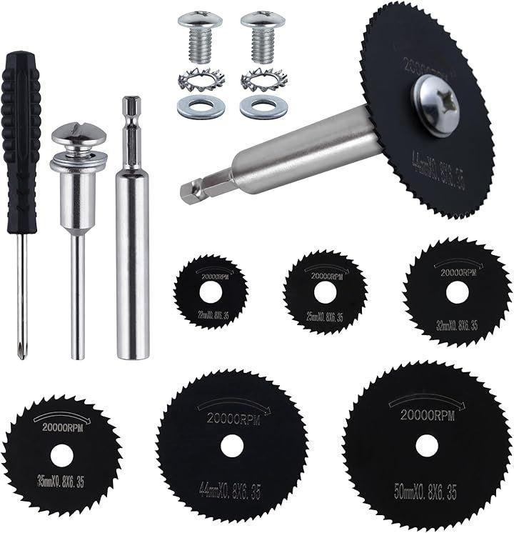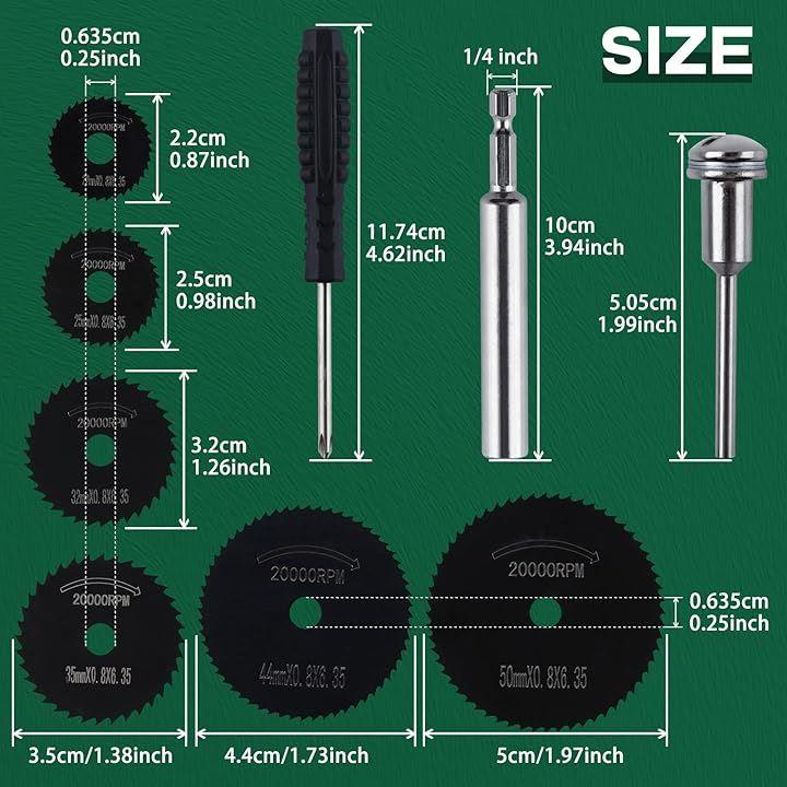 「セット内容」鋸刃の6つの異なるサイズ(22mm、25mm、32mm、35mm、44mm、50mm)、1本 丸シャンクスプライスバー、1本 1/4インチ六角シャンクスプライスバー(交換用ネジヘッドの1セットが付属しています)あなたのさまざまなニーズを満たすために、1本 付属しているプラスドライバーは、鋸刃のインストールがより簡単かつ便利になります。