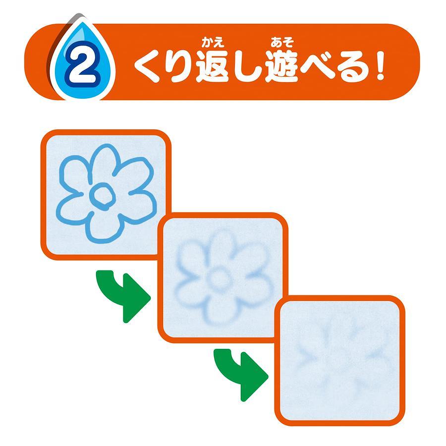 水で描くので汚れず、乾けば消えるので繰り返し遊べます。