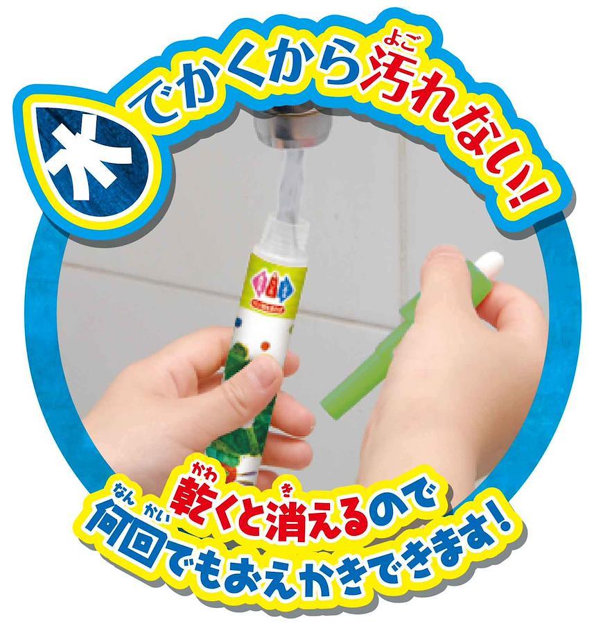 ●水で描くので汚れず、乾けば何度でも遊べるので、はじめてのおてかきに最適です。