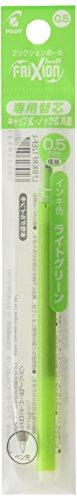 「フリクションボール。ノック」の専用替芯(リフィル)1本入りです。。インク色:ライトグリーン。ボール径:0.5mm。。商品色傾向:黄緑。。