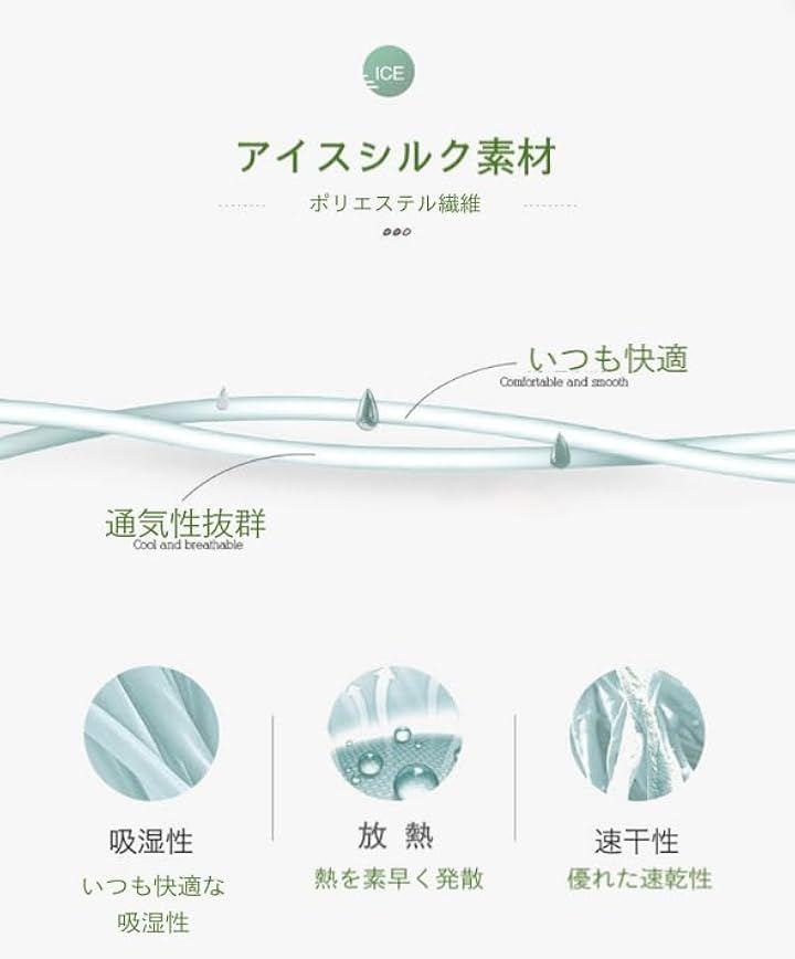 肌に触れた瞬間にひんやりと感じる接触感が特徴のアイスシルク素材。