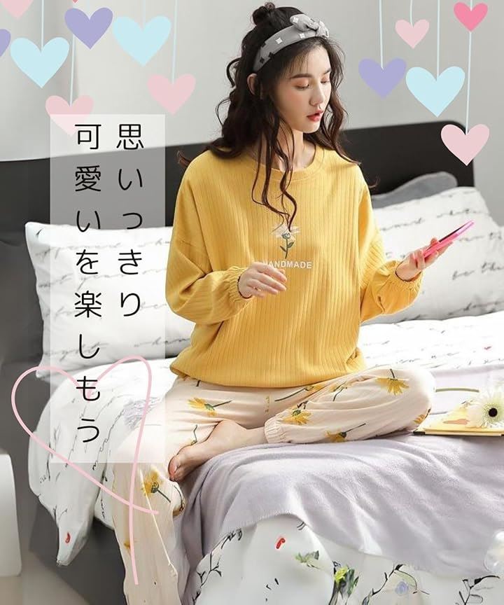 可愛い上下セットパジャマは、シンプルでナチュラルなデザインなので年代を問わず人気があり、ギフトにも最適です。