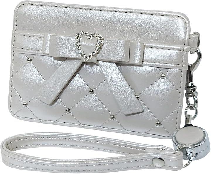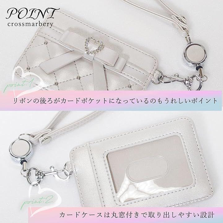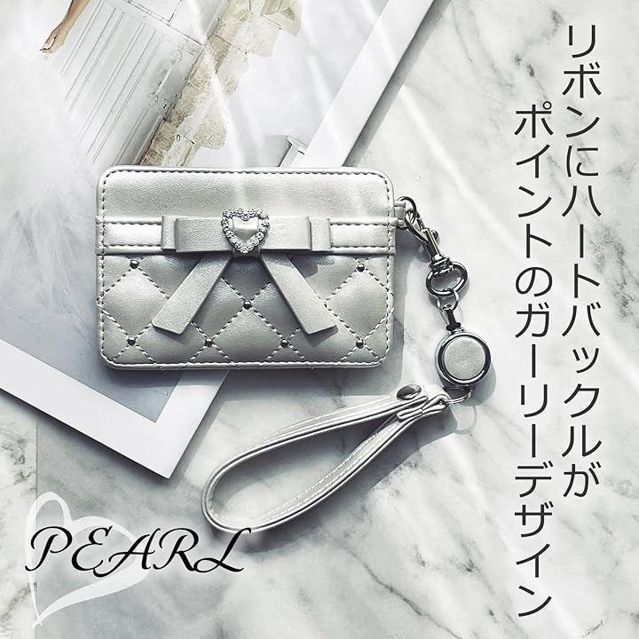 大きなリボン&ハートが可愛いアクセントになったリール付きのパスケース。