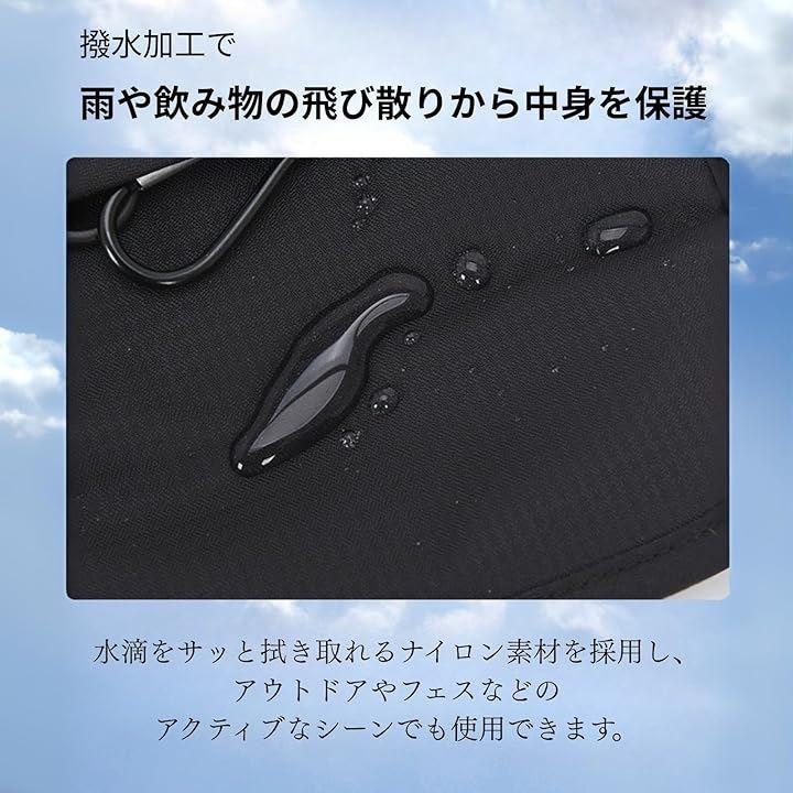 水滴をサッと拭き取れるナイロン素材を採用し、アウトドアやフェスなどのアクティブなシーンでも使用できます。