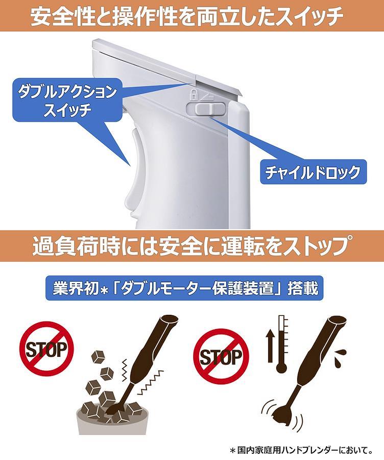 3営業日以内に発送≪新品未開封品≫:独自形状の4枚刃で切削性能UP、ムラなくなめらかに「新4枚刃ブレンダーカッター」安全性と利便性を両立した安心の新設計「チャイルドロック&2アクションスイッチ」過負荷時には安全に運転をストップ 業界初「ダブルモーター保護装置」搭載(ブレーカー&サーモスタットをダブルで採用)